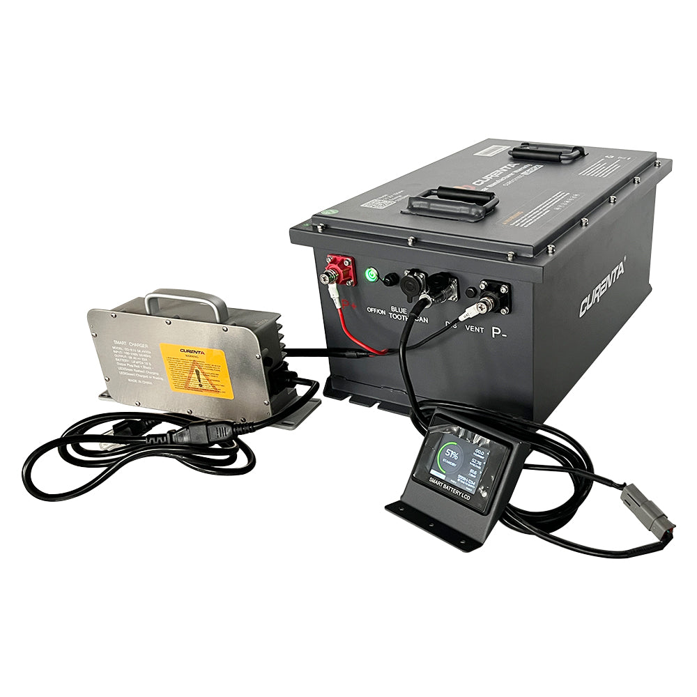 CURENTA 48V 105Ah Lithium Iron Golf Cart Battery Pack 51.2V Bluetooth LiFePO4 Battery 22A Fast Charger 2.8' Touch LCD Screen Conversion kit