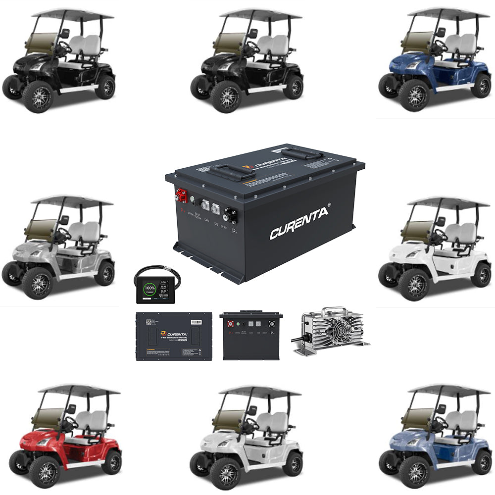 CURENTA 36V 105Ah Lithium Iron Golf Cart Battery 38.4V 105Ah Bluetooth LiFePO4 Battery 22A Fast Charger 2.8' Touch LCD Screen Conversion kit for Golf Cart
